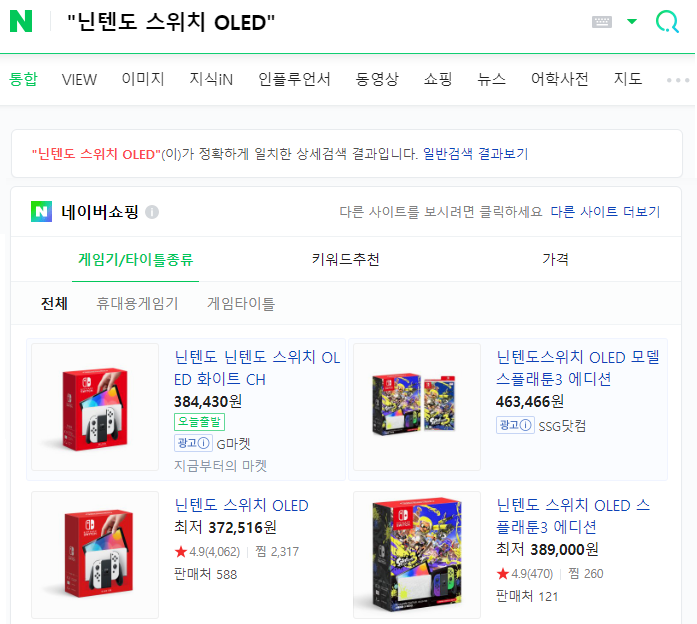 대부분의 사람들은 검색엔진에 키워드만 넣어서 검색을 합니다. 예를 들어, 네이버에서 '닌텐도 스위치 OLED'를 사고 싶다고 했을 때 우리는 이렇게 '닌텐도 스위치 OLED'를 검색해서 결과를 확인합니다. 물론 원하는 키워드를 검색하는 게 좋긴 하지만, 우리는 원하지 않는 결과들도 같이 보게 됩니다. 그러니 그 안에서 진짜 정보를 찾으려고 일일이 찾아보는 경우도 있게 됩니다.