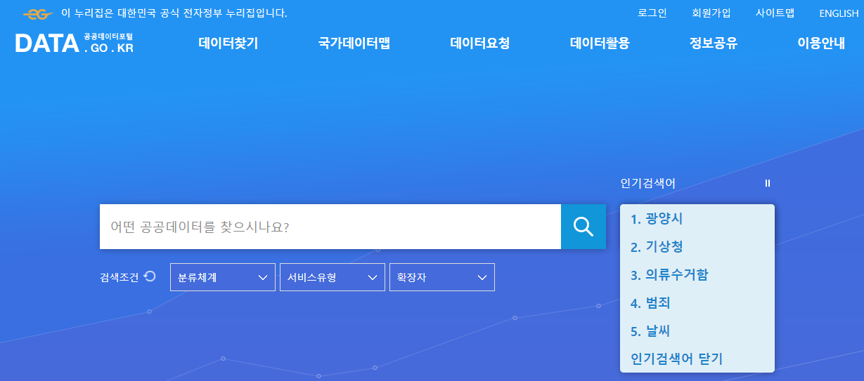 1) 공공 데이터 포털(https://www.data.go.kr/)